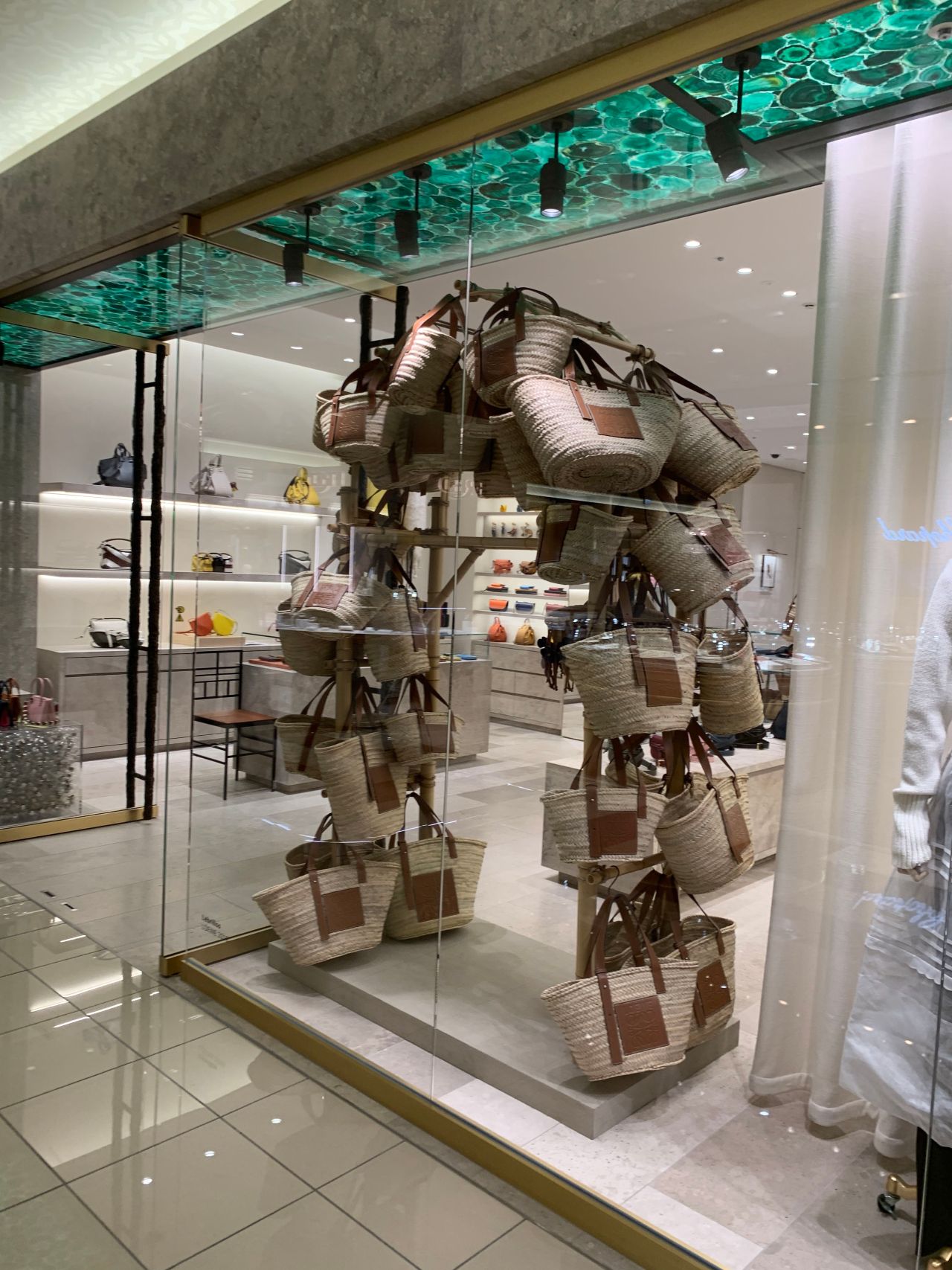 ロエベの入り口、籐籠でモニュメント