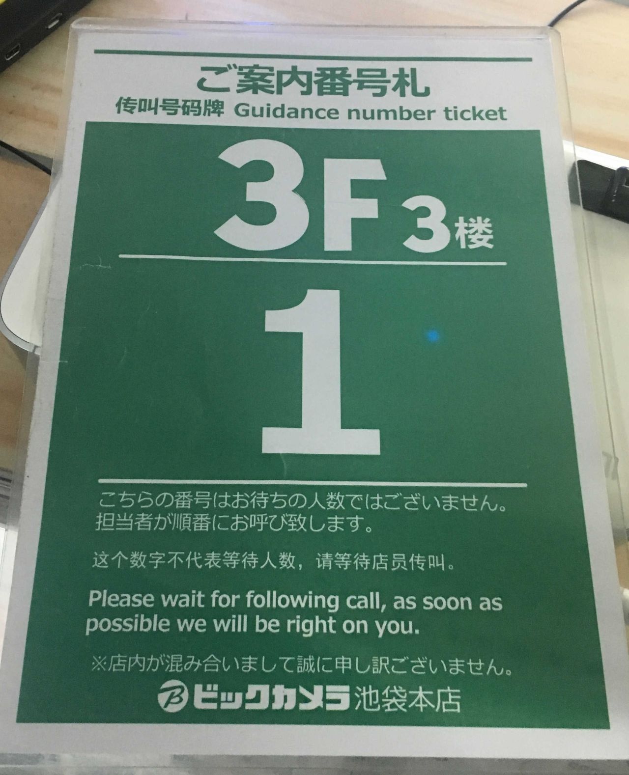 でもこの先今月中盤からが踏ん張りどころ。中旬以降の客数減をどう戦うのかは、たぶん接客もとても大事。そうそう先日ビックカメラでこんな接客待ちのカードもらってしまいました。