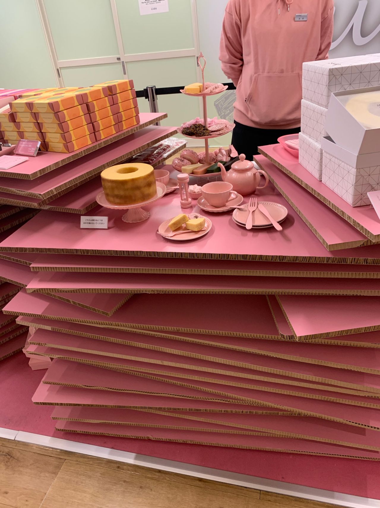 バレンタインに向けたポップアップ食物販は、ECでは出会えない、発見してもらう仕掛けのための色使いと試食か、目を引きました