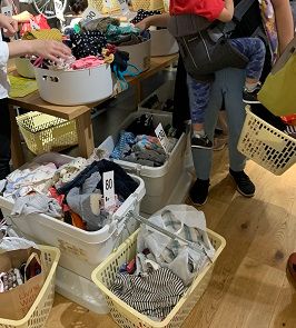 無印良品で開催されていた、子供服のおさがり商品の売場。大変な人気で長蛇の列・・