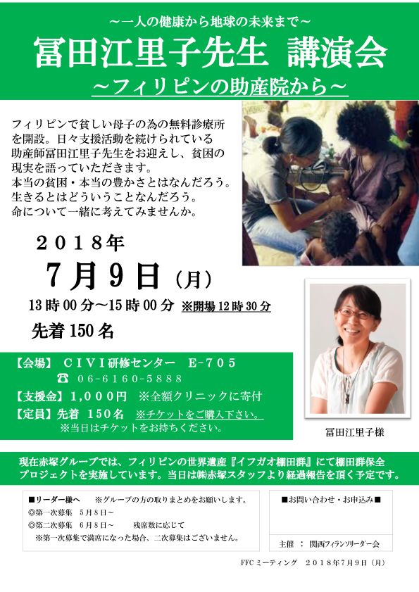 冨田江里子先生講演会 大阪 7月9日(月)貧しい母子のためのクリニックより