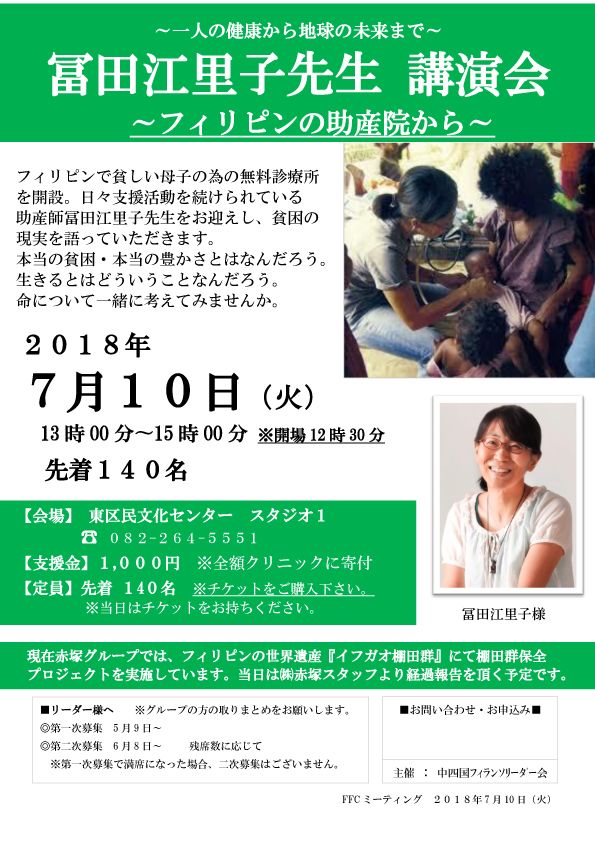 冨田江里子先生講演会 広島 7月10日(火)貧しい母子のためのクリニックより