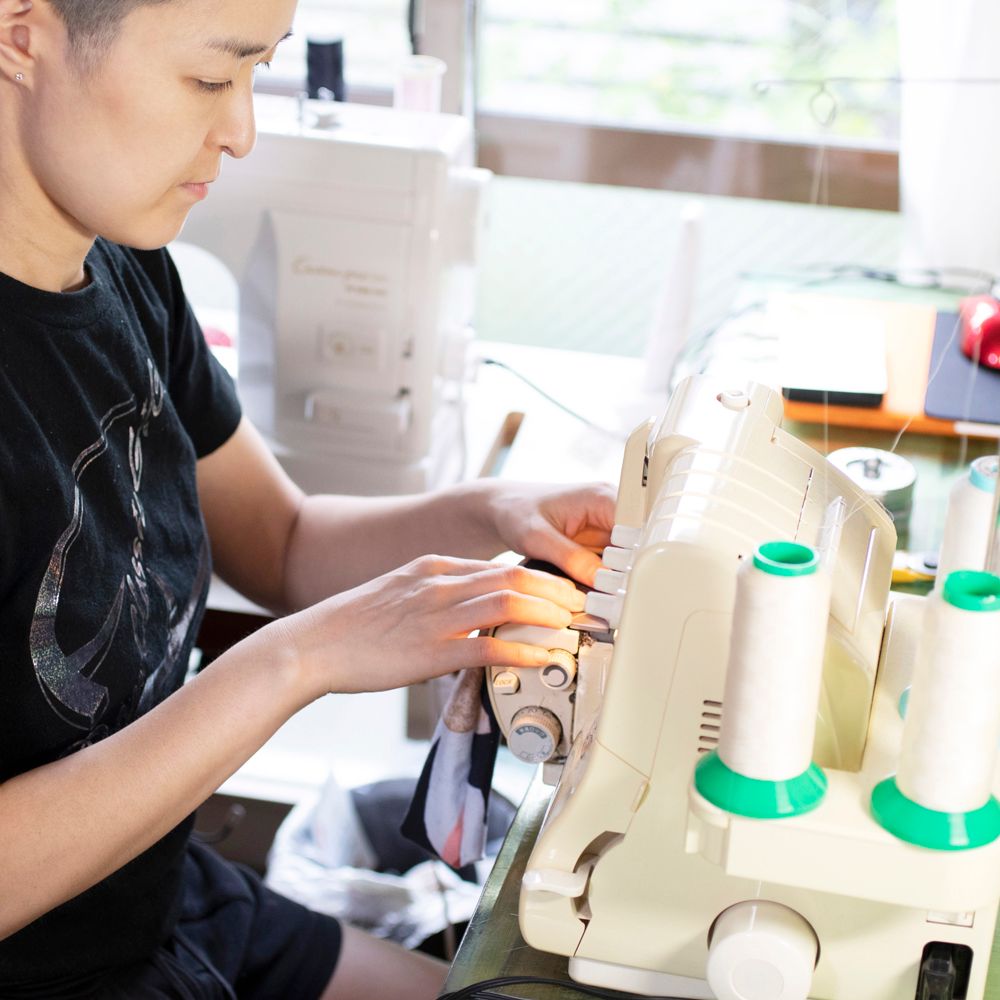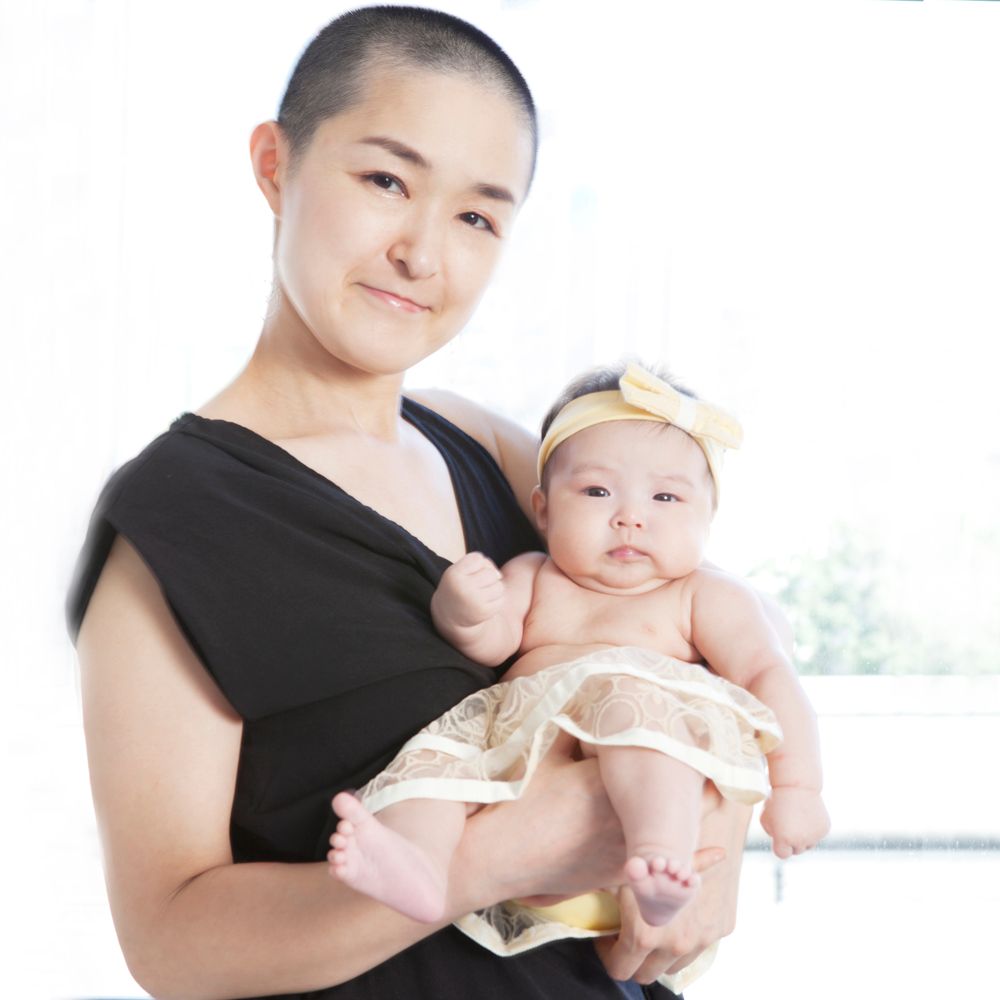 ミツカネアユミが,生まれたばかりの娘のエミに着せたい洋服をデザイン,手作りしました。