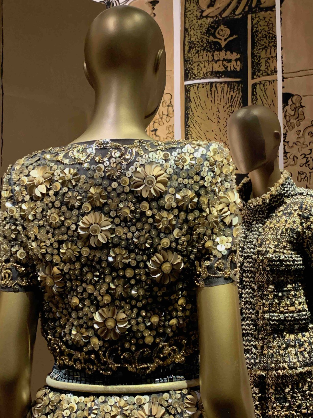 白 黒 ゴールド 赤 の色ごとに部屋がありその色に合わせた衣装とアクセサリーと香水が展示してありました。ひとつひとつがとても完成度が高くて、手作業の刺繍の細かさや鮮やかさが、まじかに見れる素晴らしいコレクションの数々です。