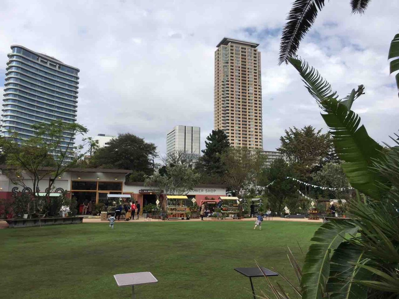 都会の真ん中なのに芝生がありわんちゃんも連れて行けるという
