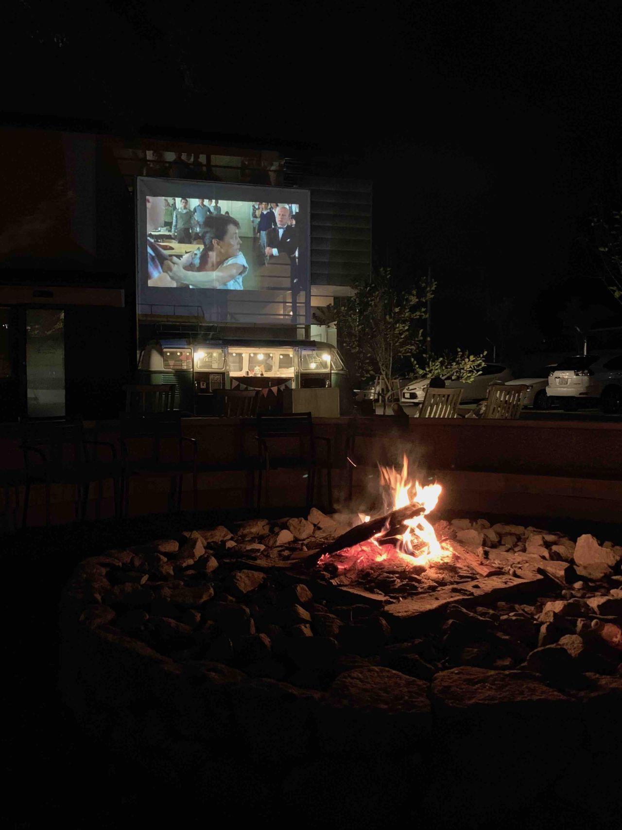 夜はキャンプファイヤーで火にあたりながら、映画を観れるという面白い企画もあり