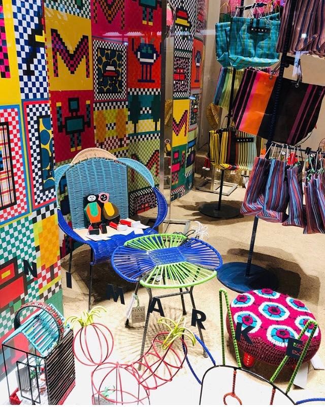 写真のようにマルニのウィンドウみたいなディスプレイが好きな人もいれば…わかりづらいからと嫌いな人もいます。