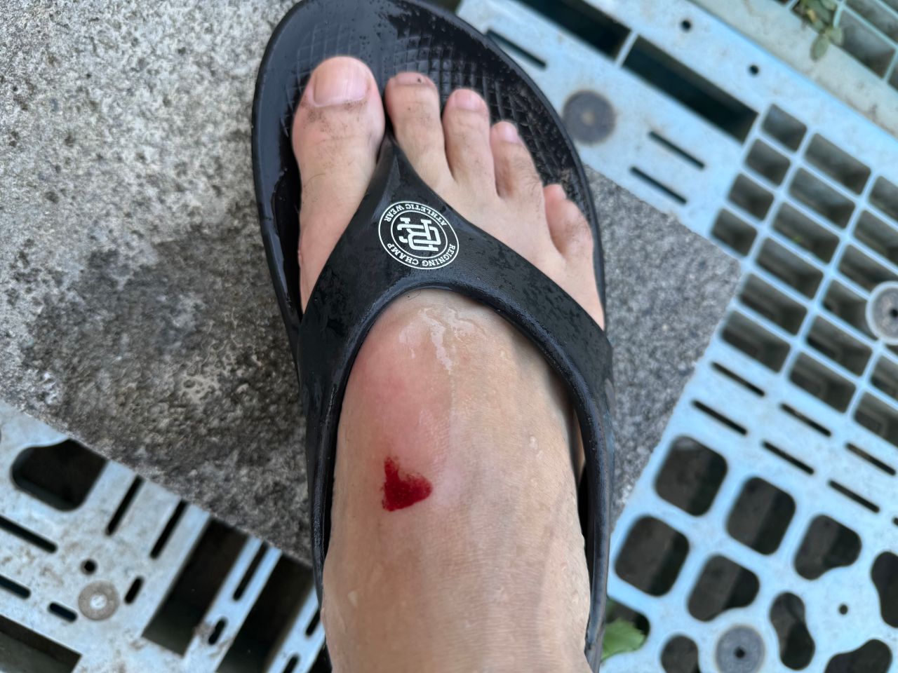 久々だったからつい無茶してダンパーの波にトライしてパーリング…フィンが足に激突しました。