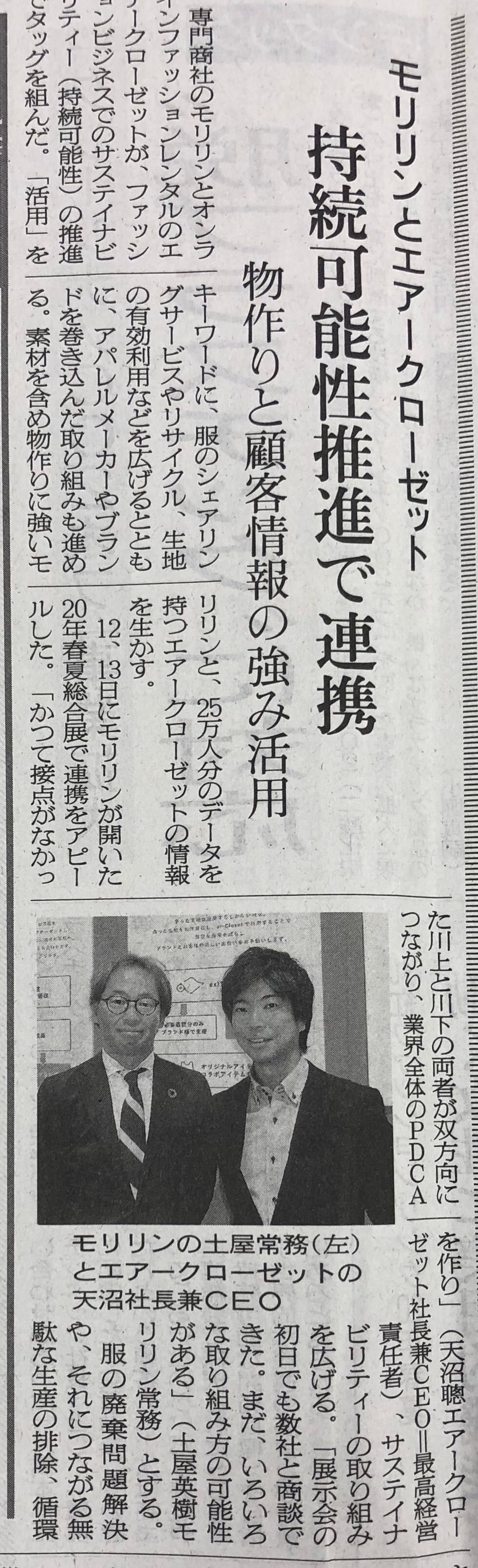モリリン×エアークローゼットにしても両社にプラスになり……そしてそしてファッション業界にプラスになり……そしてそしてそして……地球に優しい!