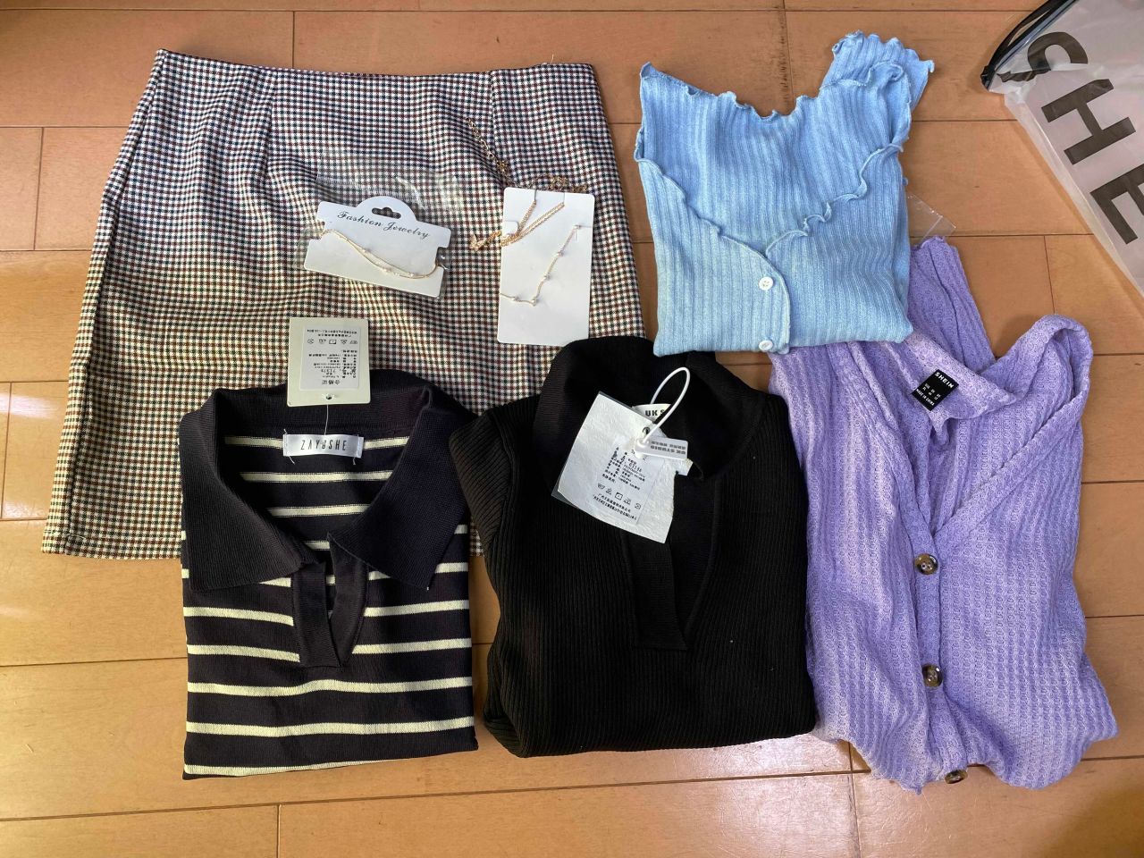 スカート、カーディガン2枚、ポロシャツ、ワンピース、アクセサリー2個!これだけ買って5000円しません。