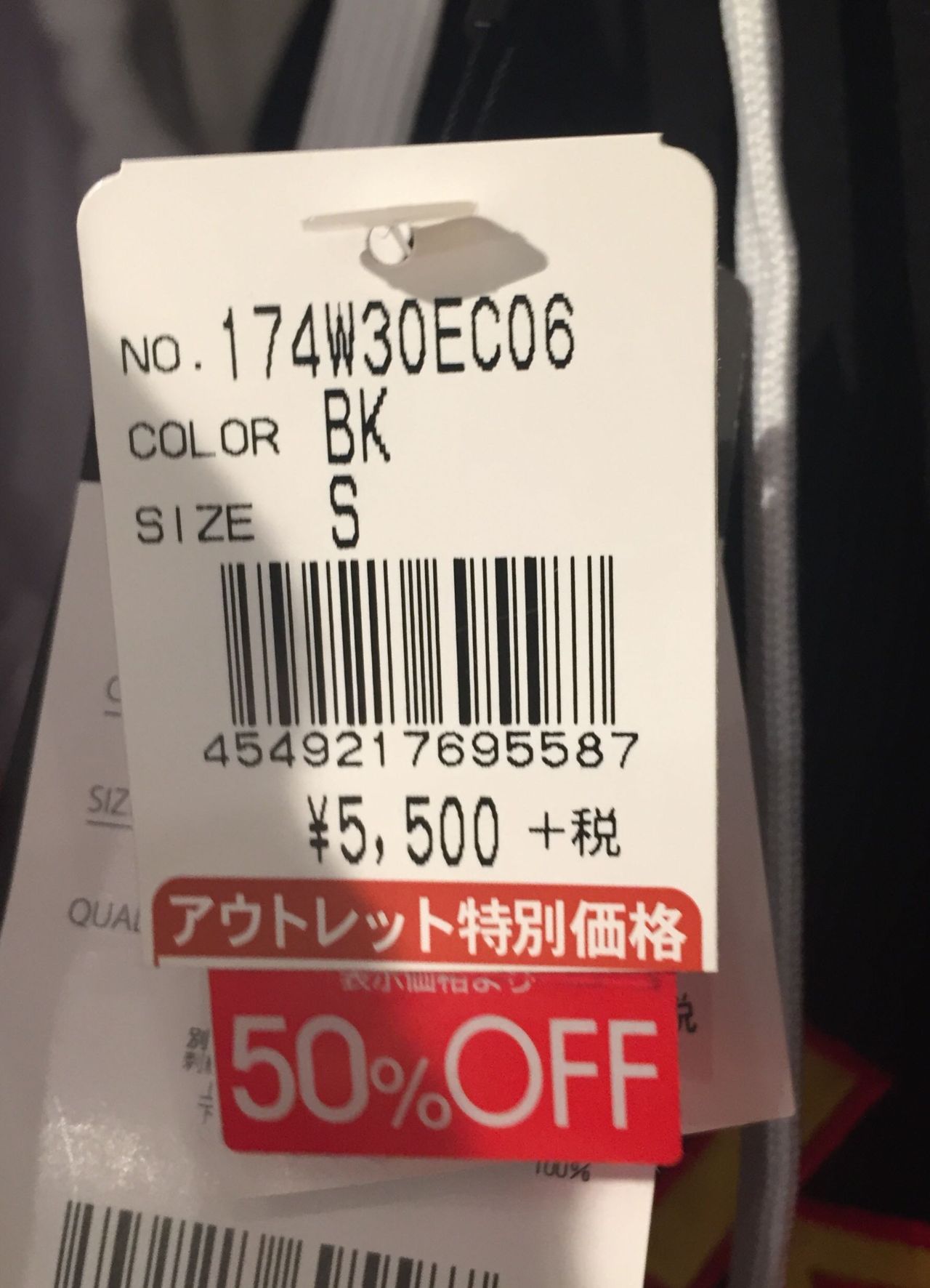 こちらが本来のアウトレット品の値札です。定価から値下げした事が一目瞭然ですね。