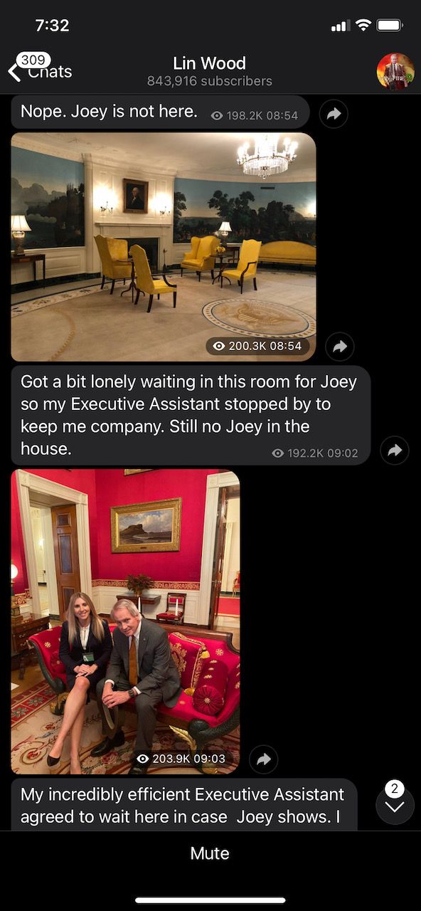 「私は正しかった。オーバル・オフィス(大統領執務室)にジョーイはいなかった。けれど、私は米国大統領に出くわしました。トランプ大統領は、2020年11月3日の歴史的な圧勝で私たちが彼を再選させた執務室でぶらぶらしながら働いていました。」