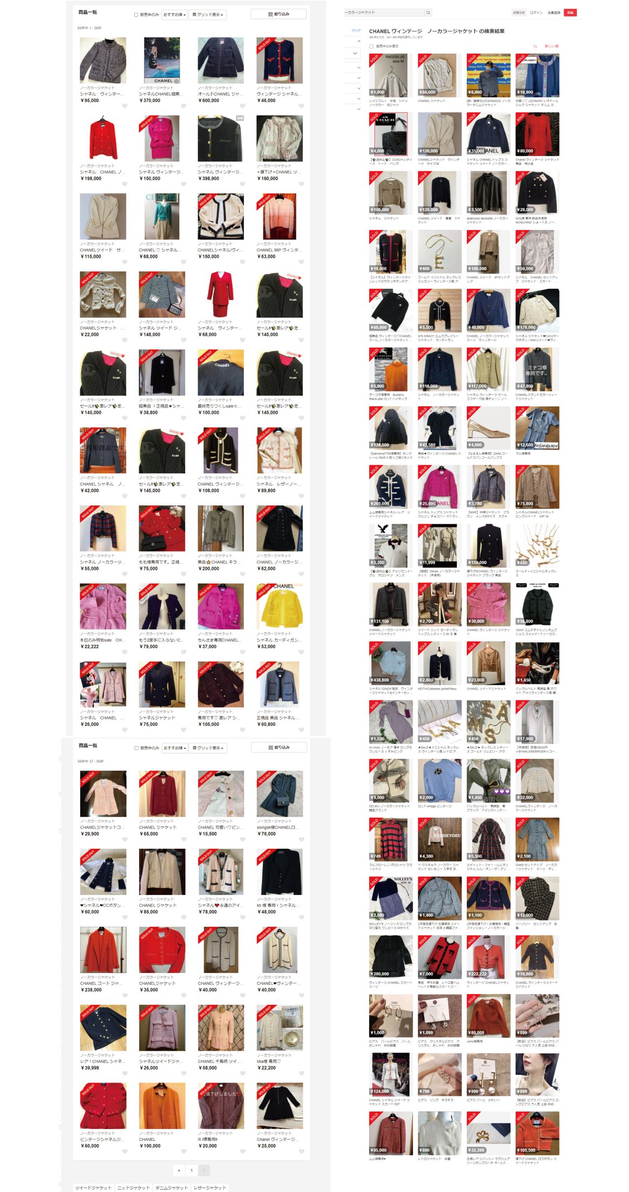 ・オンラインリサーチで、ヴィンテージCHANELのノーカラージャケットの古着が売れているようだった。