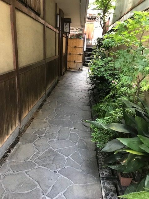 石階段を25段程上がったお座敷料亭の暖簾を潜ると、玄関の三和土の上、