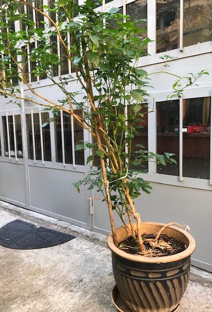 アトリエの鉢に咲く鷹の爪、6年目、冬になると越冬させる。