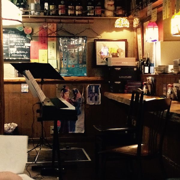 サプライズを終えたあとは新宿にすっ飛んで行き、海森での三瀬くんと大須賀さんのコンサートに立ち会いました。沖縄料理居酒屋でゴーヤジュースを飲みながらのコンサート。おふたりが苦心して考えたプログラムがすばらしくって、良い曲ばかりでバランスも良くて、居心地の良い楽しい時間。私の新曲も評判が良く、ひと安心でした。