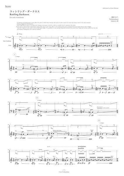 Selected for the Call for Scores by Boston Microtonal Society, 'Rattling Darkness' for solo trombone will be performed with its revised world premiere by William Lang on the 11th tomorrow, at the Lilypad, Cambridge, U.S.