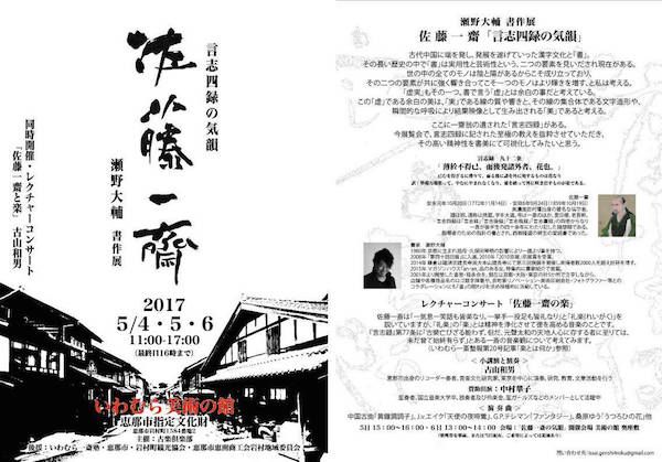 岐阜県恵那市岩村町の「いわむら美術の館」にて、書家の瀬野大輔さんの個展「佐藤一齋 言志四録の気韻」開催に合わせてのレクチャーコンサートで、今日は15時からと17時からの2回、明日は13時からだそうです。