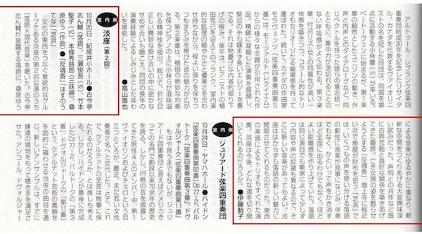 個人的なことですが。伊藤制子さんにはいまだにちゃんとご挨拶をしたことがないのですが (今回入り口で瓦煎餅をお渡ししたときにお会いしているはずで、恐縮なのですが...)、一番最初に出品した日本音楽コンクールの本選会から毎回批評が伊藤さんで、入選せずともいつもポジティブなことを書いてくださって、頑張れって言われているように勝手に感じて、励みになっていました。今回淡座の公演を聴いていただけて、本当に嬉しく思っています。