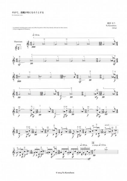 明日、東京国立博物館の応挙館で、三味線ソロのための《やがて、逢魔が時になろうとする》を、本條秀慈郎くんが世界初演してくれます。泉鏡花の言葉を音楽にあらわそうとした作品で、作曲したのは2014年。約2年を経て、音として生まれることになります。