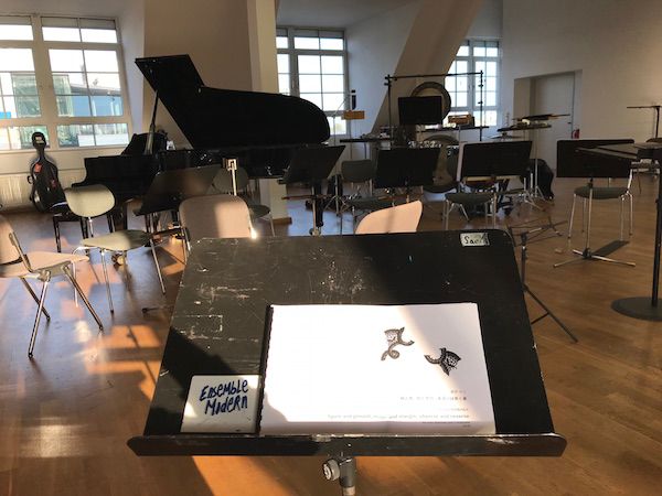 フランクフルトでのわくわくドキドキだったリハーサルと本番! 素晴らしい経験を本当にありがとうございました。本條秀慈郎くん、馬場武蔵くん、アンサンブルモデルンにより、三味線独奏と7人の奏者のための《柄と地、絵と余白、あるいは表と裏》が初演されました。