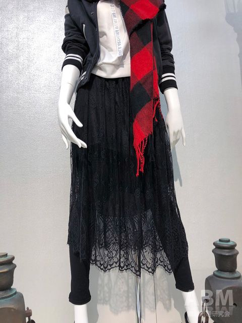 靴下やレディスインナーを手掛けるチュチュアンナ(大阪市)の2018年秋冬展示会。主力の靴下では、クルーソックスでトレンドを考慮した丈が長めのタイプを企画・提案した。レディスインナーでは、主力の1つに育ってきた「ノンワイヤーブラ」において、レース柄など新しいアイテムを拡充した。