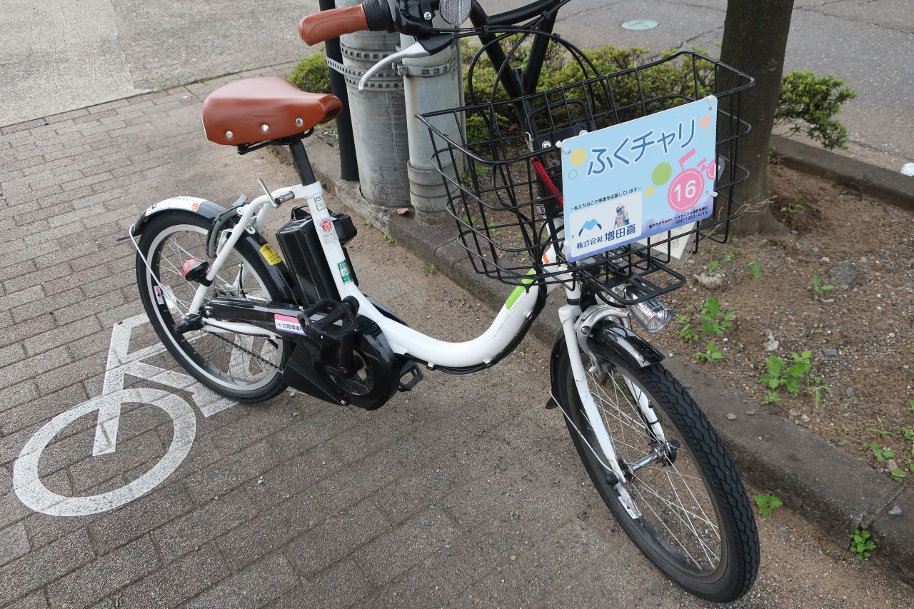 福井県に出張した際の移動はレンタカーが多いが、たまにレンタサイクル「ふくチャリ」を使う。ホテルでも貸し出しており、返却は借りた場所でなく福井駅前でもよいところが便利だ。電動アシスト付で1日借りても500円。本来は観光用なのだろうが、仕事でも多いに役立つ。