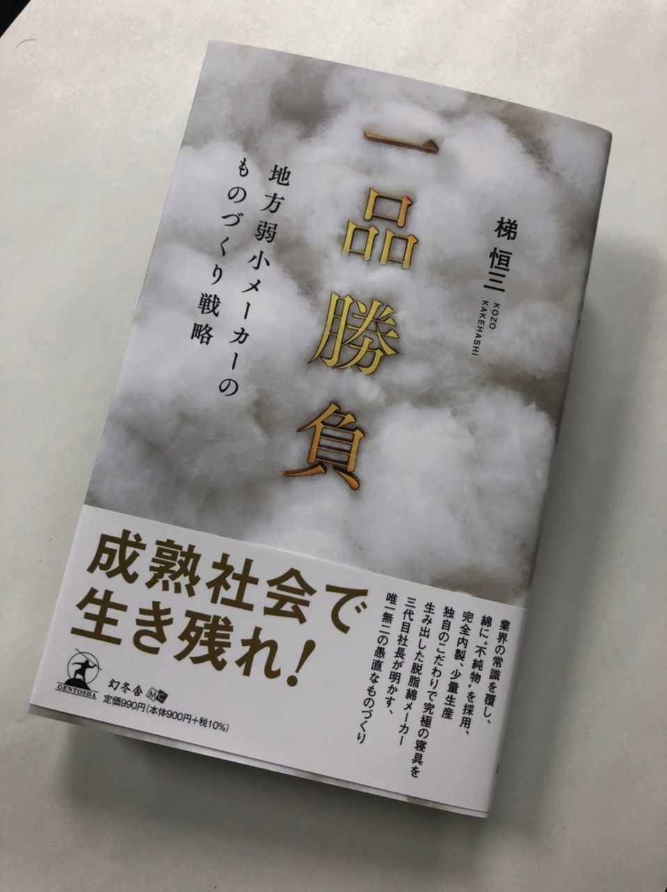 【大阪本社】寝具製造卸の龍宮(福岡県うきは市)社長の梯恒三氏が記した書籍「一品勝負~地方弱小メーカーのものづくり戦略~」(幻冬舎)が今春出版された。同社は医療用純度のガーゼと脱脂綿を使った寝具などの「パシーマ」シリーズが主力商品。今でこそ独自の地位を築き存在感を示すが、時代に淘汰(とうた)されそうになった時期もあり、苦難を乗り越えてきた歩みが書かれている。「初心を忘れないものづくりこそ時代を超えて愛される」「作りすぎない」などモノ作りの信念や哲学も散りばめられている。(長)