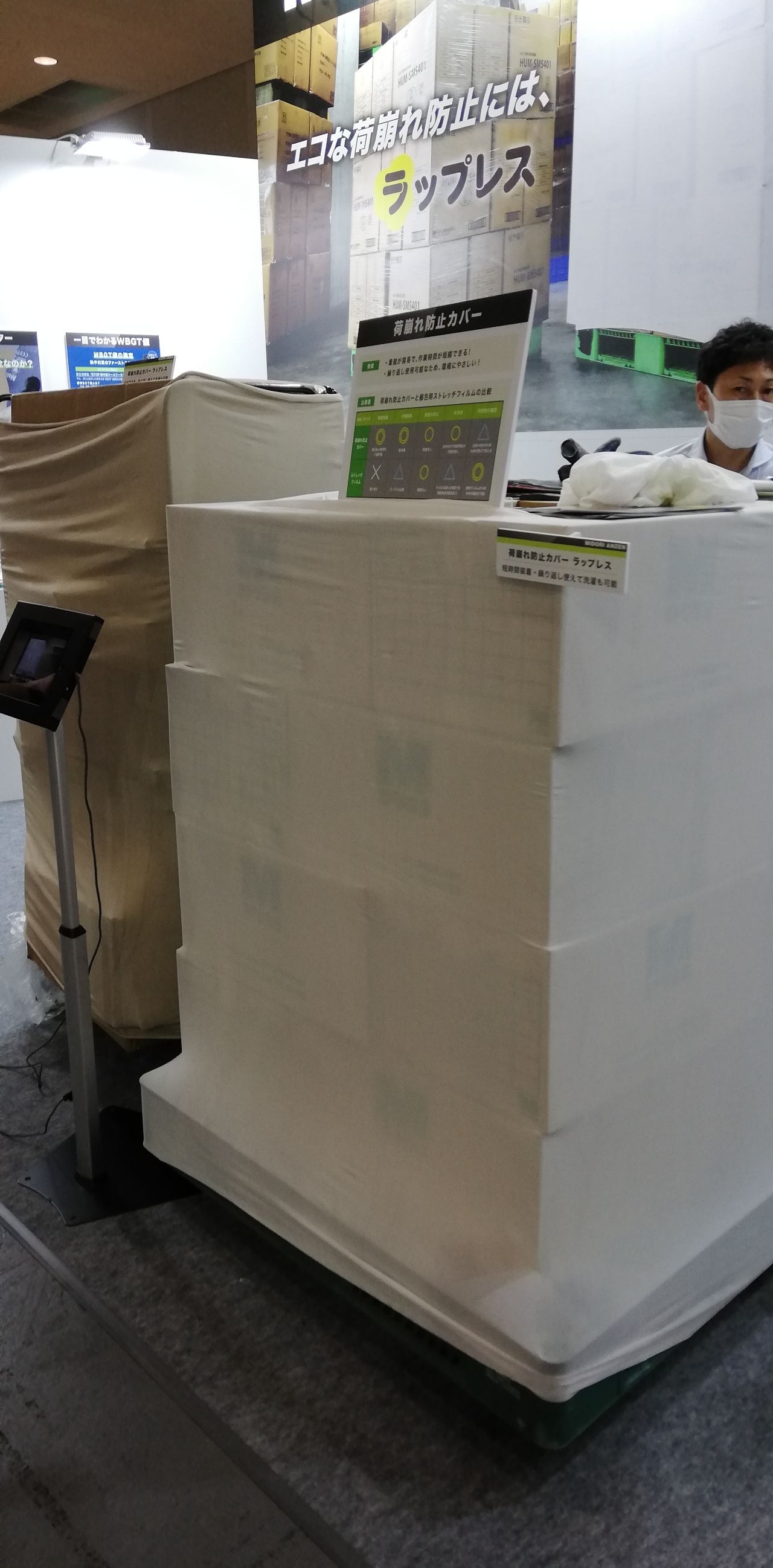 【大阪本社】デジタル技術で世の中がどんどん便利になる。しかし、デジタルが全てではない。写真はミドリ安全が開発した布製荷崩れ防止カバー。通常の荷崩れ防止にはストレッチフィルムが使用される。サランラップをイメージすれば分かりやすいか。その代替として、よく伸び、破れにくい編み地を開発。繰り返し使えるため環境負荷が低減され、取り付けも簡単。カットの必要もない。物流分野に提案したところ大反響だそう。デジタルに頼らずとも販路開拓の余地はいろんなところに転がっている。(武)