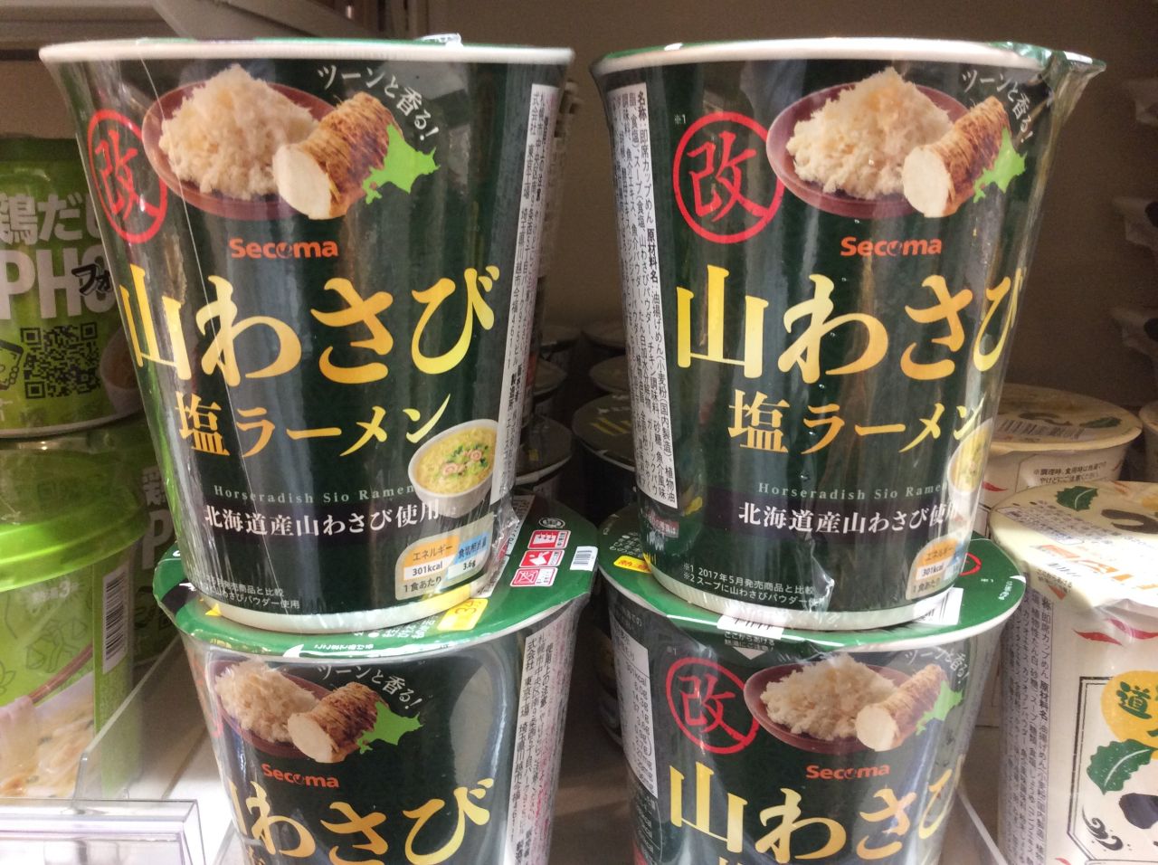 【東京本社】「涙と鼻水を流し、むせながら食べた」経験をしたのは、このコラムの筆者(近影なし)。「食べる催涙ガス」と称されるカップ麺『山わさび塩ラーメン 改』をスーパーで見つけたので購入し、食した。とにかくわさびが強烈。この味が多くの人に受け入れられるかどうかは分からない。ただ話題になったのは確かだ。奇をてらうだけではいけないが、「繊維やファッションもたまにはとがってもいいのでは」と思う。今年9月で50周年を迎えた『カップヌードル』のように長く愛される定番を作るのが理想だが。(桃)