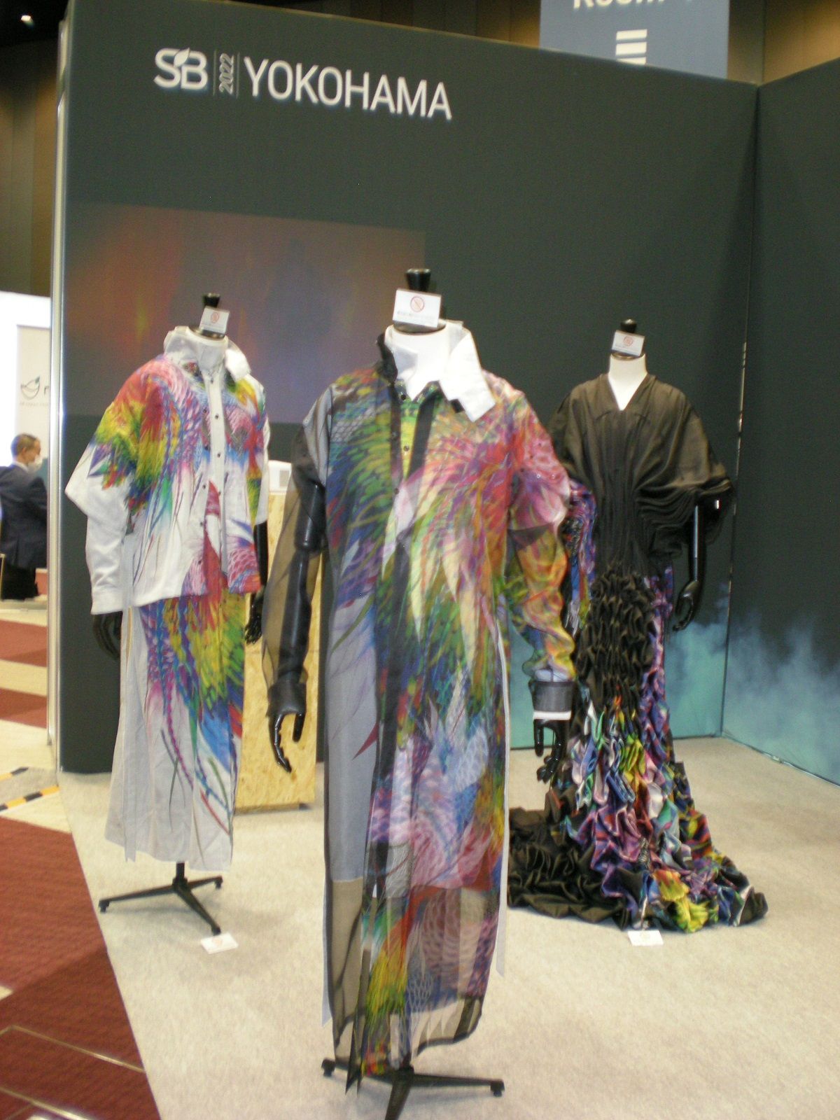 【東京本社】2月下旬に横浜市内で開かれた「サステナブル・ブランド国際会議」(博展、サステナブル・ライフ・メディア主催)を取材した。3年連続で訪れているが、規模が少しずつ大きくなっているのを感じた。場内各所で行われるセッション(討論会)のテーマもバラエティーに富み、参加企業の業種の幅も広がっている。しかし、繊維関連企業の参加が目に見えて増えたとは言い難く、異業種交流の場に姿を現さないことに寂しさも覚えた。それでも、セイコーエプソンがデジタル捺染機でプリントしたオートクチュールを、デジタル映像と組み合わせて展示する試み(写真)は、来場者の関心を引き寄せていた。発信の方法次第で、イベント参加をより有意義なものにできることを改めて知った。(強)