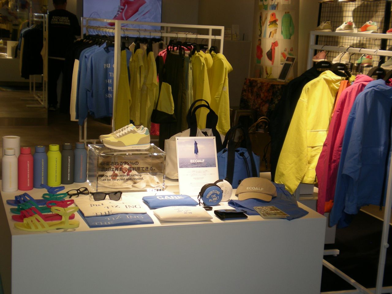 【東京本社】4月22日は地球環境を考える「アースデー」。今年も世界各地で、多種多様なイベント・企画が催される。実施期間が長い毎年6月の「環境月間」と比べ、やや影が薄い印象を抱いているが、1日に集中して共通のテーマについて一斉に思いを巡らせる機会を設ける方が、インパクトが強いとも言える。アパレル業界でもアースデーに関連した企画を催す事例が散見される。三陽商会は、サステイナブルファッションブランド「エコアルフ」の期間限定店=写真=を、ルミネ新宿(東京都新宿区)で開いている。新宿駅直結と人通りの多さでは国内有数と言うべき立地環境を生かし、どれだけ消費者に向けサステファッションの認知度を高められるか。成果に期待したい。(強)