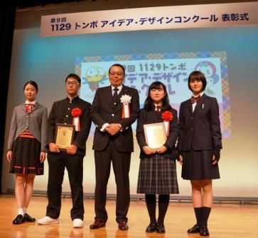 【中国・四国支社】学生服製造大手のトンボ(岡山市)は今月1日、11月29日の「いい服の日」にちなみ、さん太ホール(同)で「トンボアイデア・デザインコンクール」の表彰式を開いた。同社の従業員や中学校・高校の生徒、教員など約300人が参加。今回は初めて1万点超の応募があり、その中から最優秀賞、優秀賞の作品を具現化してファッションショー形式で紹介、独創的なアイデアやデザインに対し来場者が感嘆の声を漏らす場面もあった。