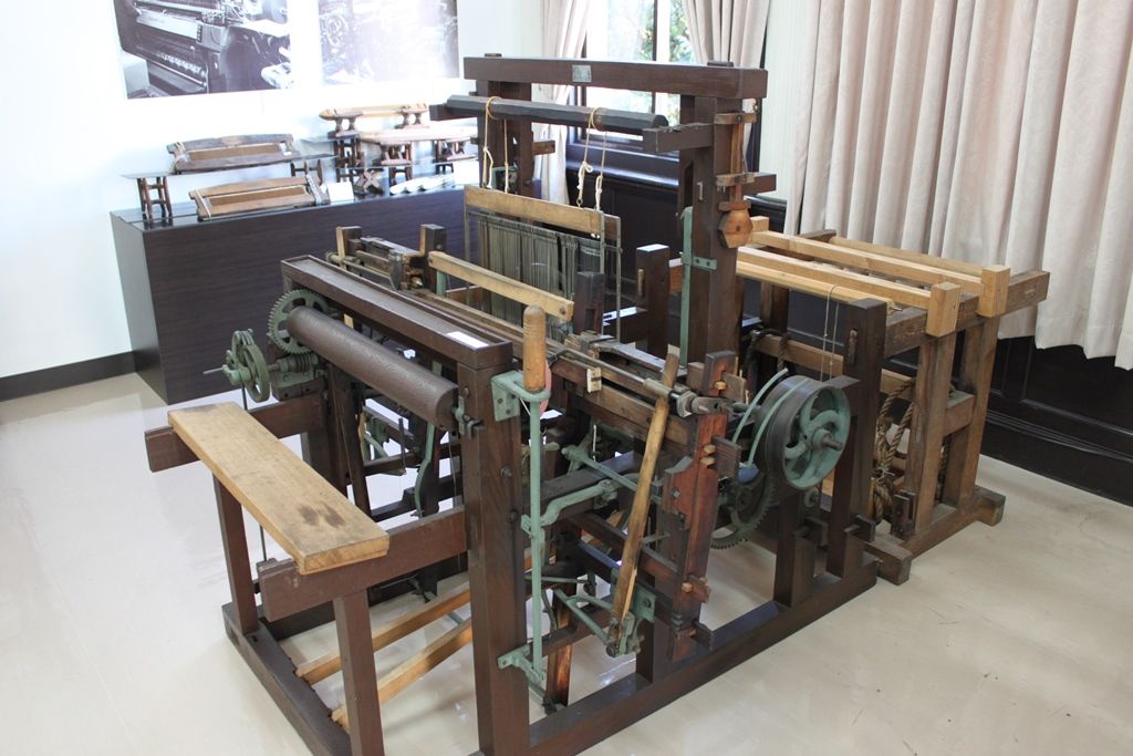 館の2階にある織物資料展示室には、伝統工芸品である「桐生織」の七つの技法を用いて織られた和装織物が展示され、輸出が全盛期だった頃のテキスタイルも飾られている。強撚糸を作るための八丁撚糸機、各種の織り機、紋彫機(通称ピアノマシン)などの機械や道具も並び、手織りの体験もできる。
