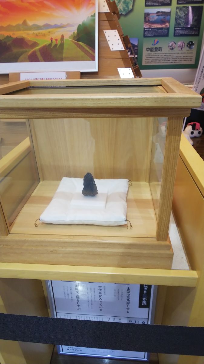 【大阪本社】出張の自動車移動の際、時間調整に便利なのがコンビニと道の駅。石川県中能登町にある「織姫の里なかのと」もたまに利用する。道の駅に入ると、その土地のことも分かって面白い。中能登町は能登の中でも特に織姫にまつわる物語が多く伝えられており、この名称にしたそうだ。ここの売りの一つはトイレの内装なのだが、入ってすぐの展示スペースにある日本最古のおにぎりも目を引く。杉谷チャノバタケ遺跡から発掘されたもので、学術的には粽状炭化米塊というが、底が5㌢、二つの外辺が8㌢と8・5㌢、厚さ3・5㌢のおにぎりと判明。弥生時代の中期から後期にかけてのものらしい。出張時の昼食はコンビニおにぎりの比率が劇的に上がることもあってか、訪れるたびに興味を持って見ている。(星)