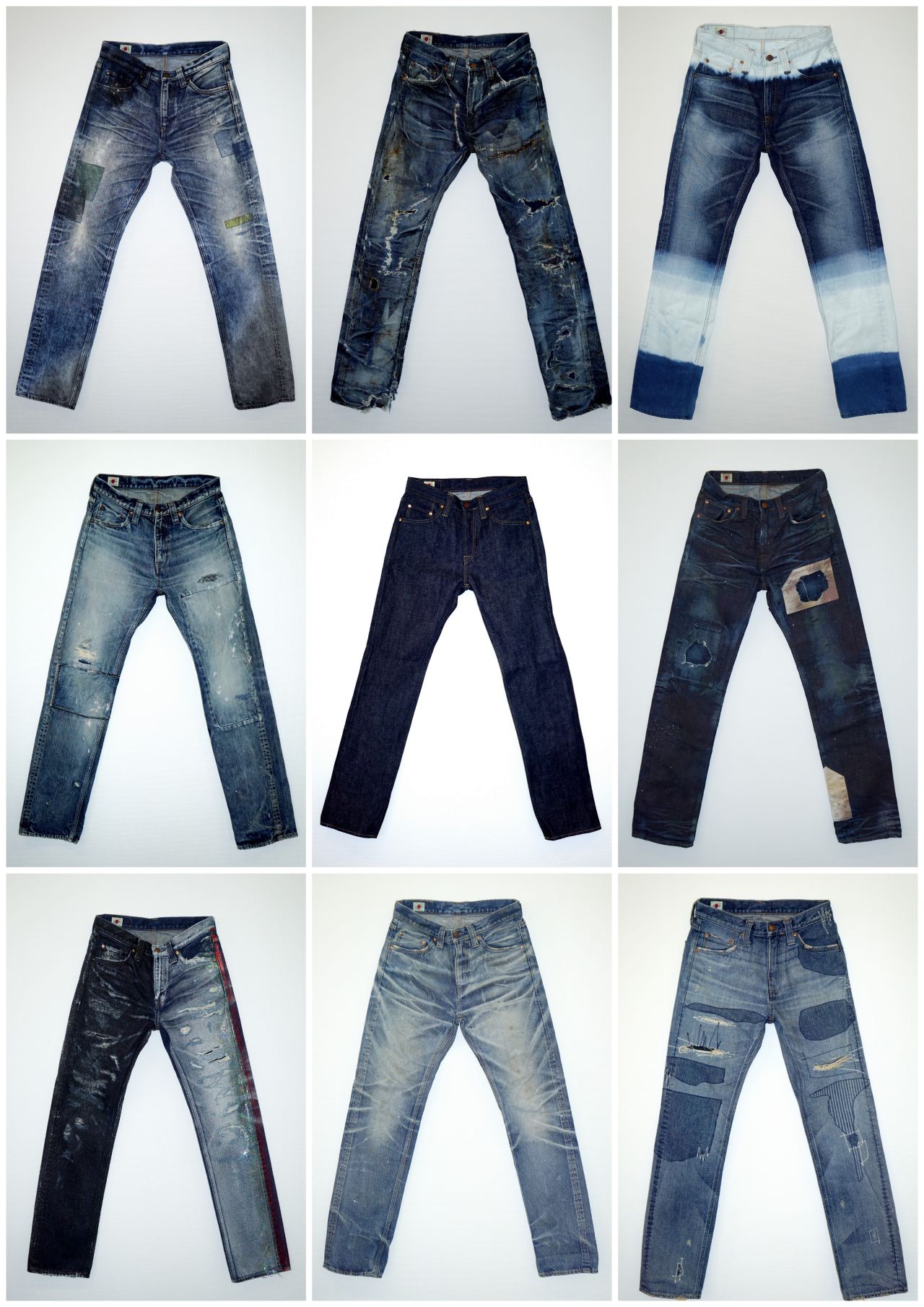 正直、「8社とも同じような加工、テイストで仕上げてきた場合、どうするのか」という懸念があった。しかし、各社から加工が施されたジーンズが続々と返却されるにつれ、単なる杞憂に過ぎないことが分かった。8社が加工したジーンズを並べてみると、まさに七変化ならぬ“八変化”。同じジーンズがここまで変わるのかと驚くほど、各社の個性が表れたジーンズが集まった。