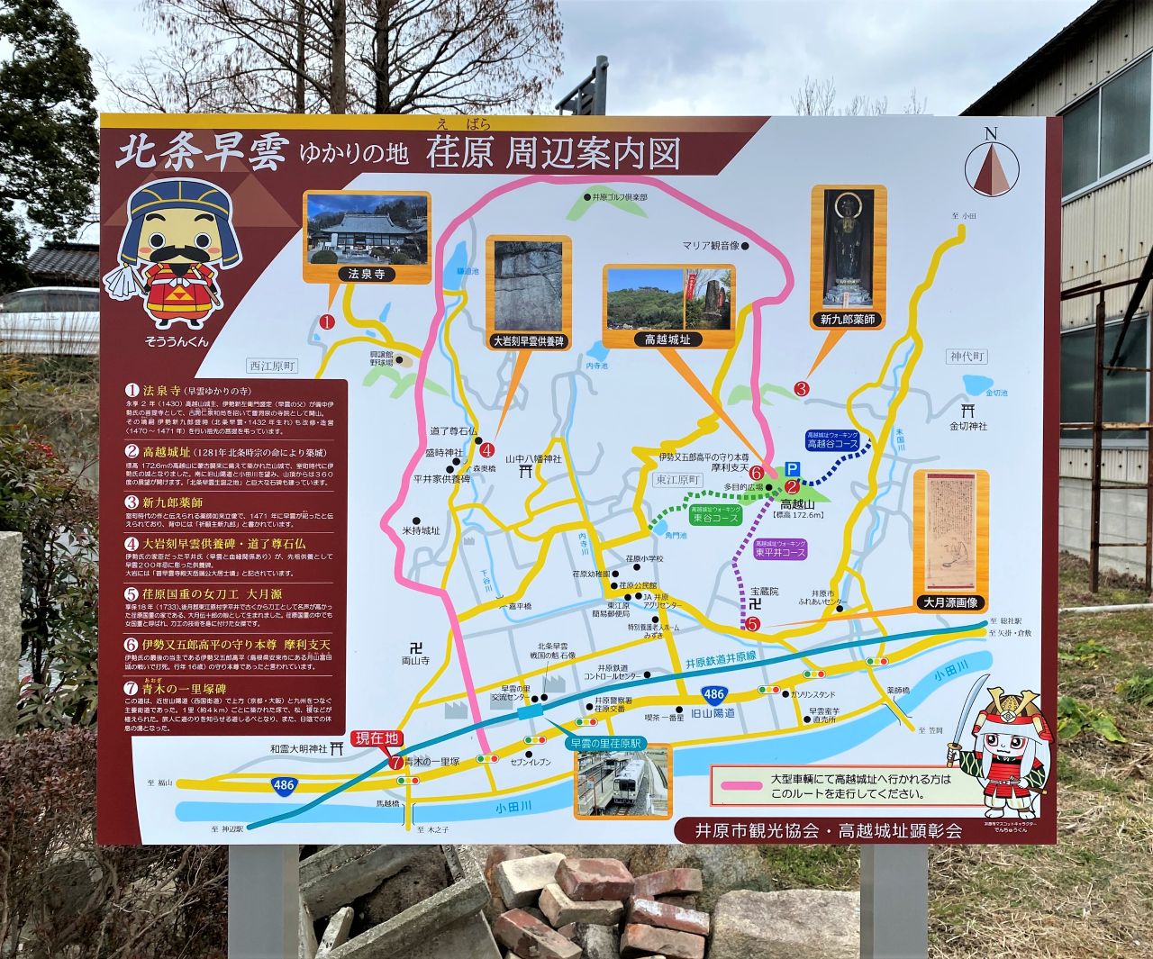 【中国・四国支社】デニムの生産が盛んな岡山県井原市。同市東部に位置する東江原町一帯は戦国時代初期の武将、北条早雲の出生地といわれる。近隣には、早雲ゆかりの寺や、早雲のものと伝えられる墓などが散在する。同市は早雲生誕の地としてPRするほか、NHK大河ドラマ化を目指して署名活動などにも取り組んだこともある。ちなみに、同町内にある井原鉄道の駅の名前も「早雲の里荏原駅」と“早雲づくし”だ。生誕の地の石碑が建つ山城の高越城址は見晴らしも良いようで、一度訪れてみたい。(秋)
