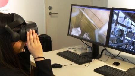 実際にVR体験すると、機場の作業風景が目の前にあり、糸の一本一本まではっきりと見える。織機の音も臨場感がある。「VRは技術的にはほぼ完成しているが、それを何に使うかがまだ明確ではない。今回の出展はデザイナーの方に体験していただき、何かヒントを得るため」(CADネットワークサービス)と語っていた。(康)