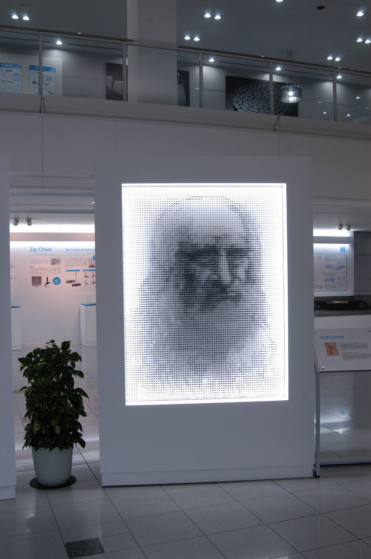 従業員約千人が働く同工場は、京田辺市郊外の小高い丘の一角に位置する。同社広報に工場について説明を受けた中で、非常に興味深いことを知る。 「最後の晩餐」の壁画で知られるミラノの画家レオナルド・ダ・ヴィンチ(1452-1519)は、実は画家、彫刻家、建築家の活動以外に兵器の設計や生理学など多方面の分野に才能を発揮した。彼のスケッチには、後のチェーンと同じ構造のチェーンが描かれていた。写真は椿本チエインの実際のチェーンで描かれたダヴィンチ。オブジェとして同工場の受付フロアに飾られており、来社する人々の興味を引く。 同社は創業100周年を今年迎え、約50年ぶりにユニフォームを一新、11月から新ユニフォームを着用している。まさにチェーンのごとく歴史をつなぐ企業として躍進中である。(篠)