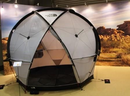 ゴールドウインが展開する「ザ・ノース・フェイス」が4月に発売した、ドーム型テント(写真)は見ていても楽しい。価格は18万円と高額だが、初回オーダー分はすぐに完売し、秋冬のオーダーも前倒ししたほどという。「キャンプが初めてでも買う人がいる」(同社)。テントも個性の時代。次はどんな形が登場するのか、楽しみにしている。(國)