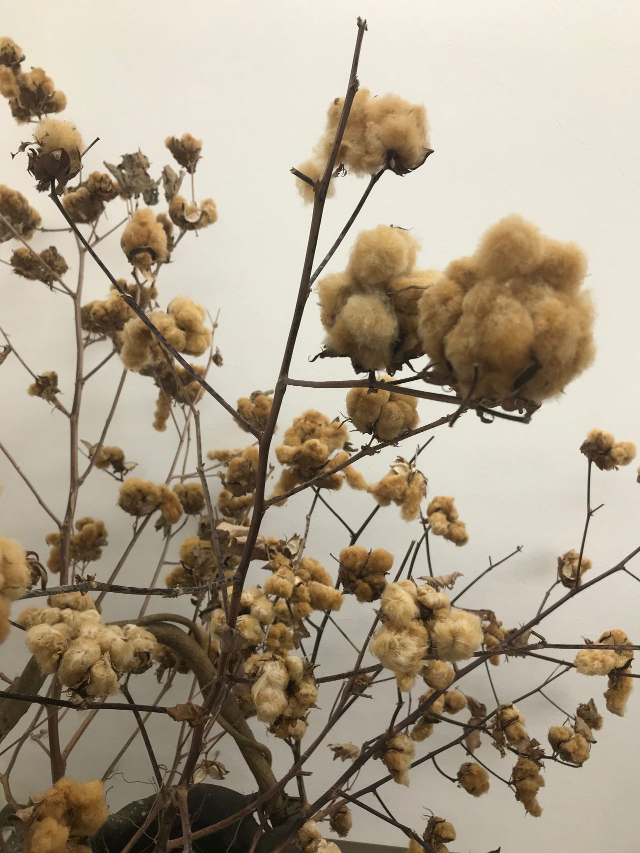 着色したわけでなく、綿花そのものに色がある。白い綿花は染色しやすいように人類が膨大な年月をかけて品種改良した成果で、画像の方が原種に近いそうだ。