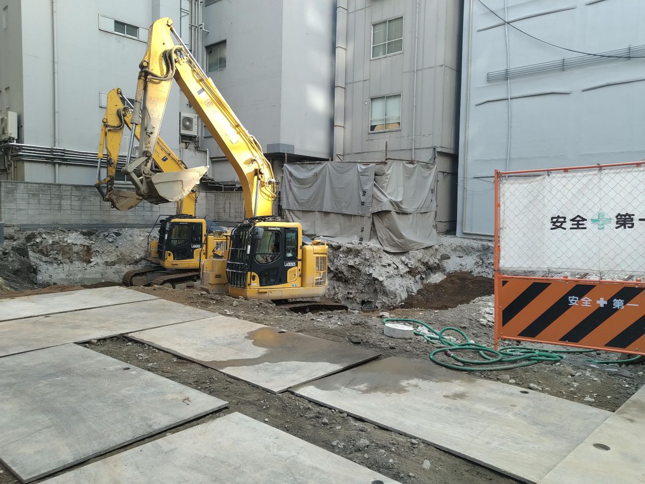 【大阪本社】大阪本社界隈は昨年から「槌音かまびすしい」との表現がぴったりで、近辺のどこかから音や振動がやまない。昭和の頃に建てられたとおぼしきオフィスビルが解体された後には都心回帰型のタワーマンションかコインパーキングになる場合が多いようだ。写真の現場は地下を掘り返しており、隣接するビルのコンクリートの基礎がむき出しになっている。その基礎の分厚さは上の建物の大きさに対応するためや、災害対策など大阪市の長い歴史の中での地層なのだろうと思いをはせる。などと偉そうに言いながら、ここに何が建っていたかの記憶は既におぼろげである。(酒)