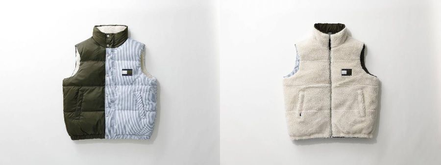 同コレクションは、ブランドアーカイブの定番アイテムを再構築。パフォーマンスファブリックを使用し、ミリタリーのユニフォームにインスパイアされたカラーパレットからは、ブランドのシグネチャーであるイサカストライプや、ウッドランドカモフラージュプリントをあしらった、ヘリテージを意識したシルエットが揃う。また、オリーブウッドグリーンのカラーとウッドランドカモフラージュのパターンで新たに生まれた「トミー ヒルフィガー」フラッグを配し、アーカイブに基づいた実用的なディテールや、リバーシブルデザイン、バッグなど技術的にも充実したラインナップだ。
