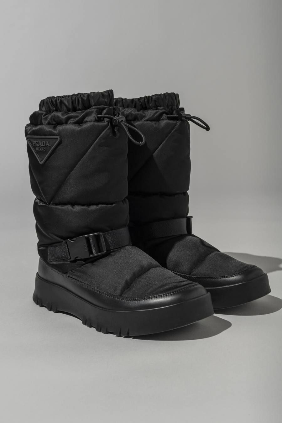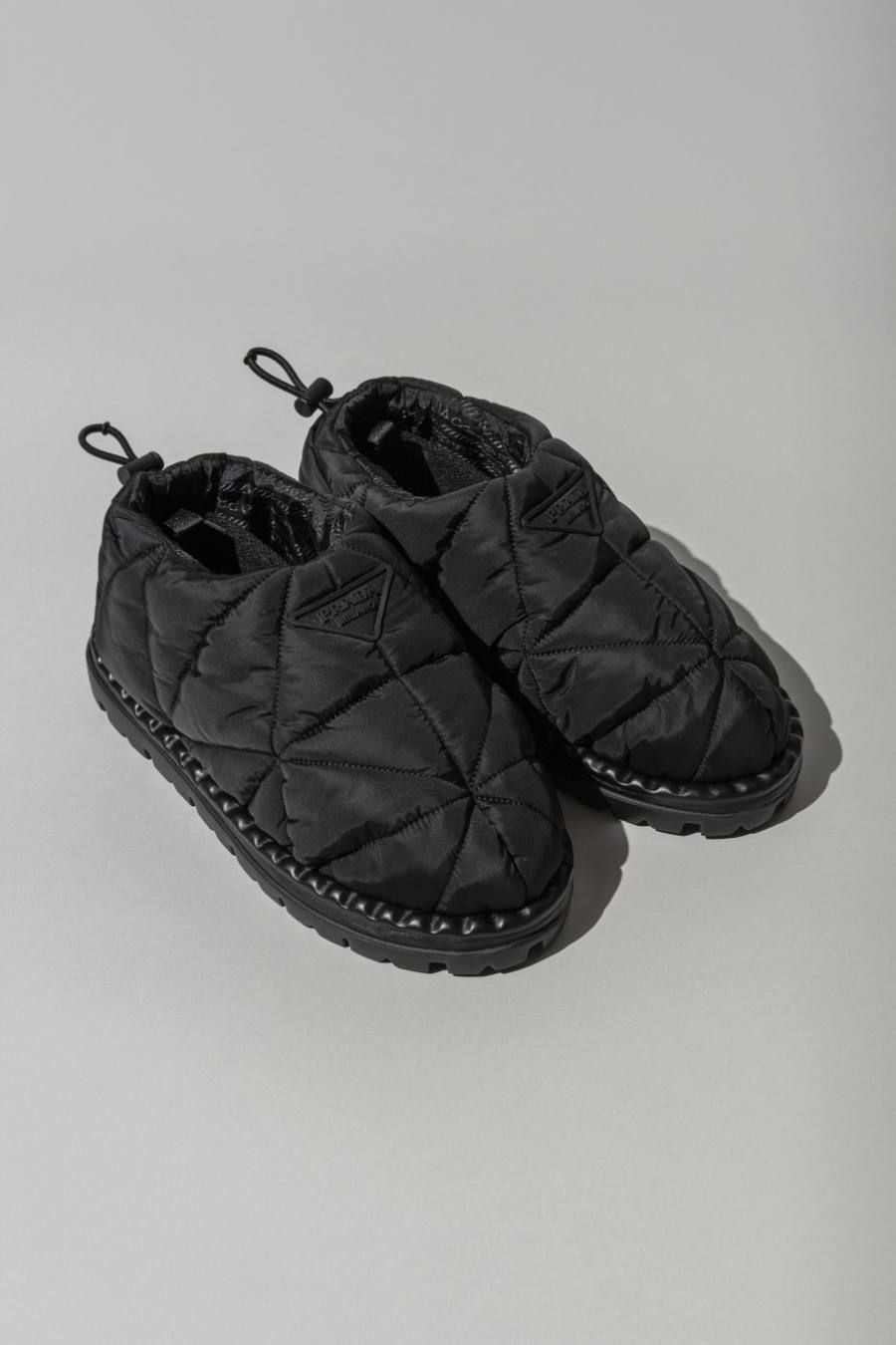 その空間では、帽子やマフラーにキャメルやカシミアを、キルティングのジャケットや新しいスタイルのスリップドレスには Re-Nylon、バッグにはシープスキンのファーと、貴重で機能性の高い素材を使用したウィンターシーズンに向けたコレクションをラインナップ。さらにスキーやスノーボード、ソリ、ヘルメット、スキーゴーグル、寝袋などもディスプレイしている。