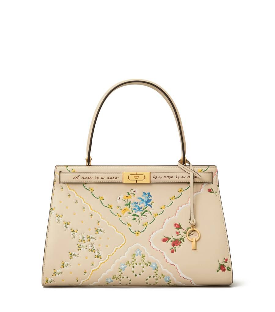 ハンカチーフは、トリー・バーチが敬愛する母リーバ(REVA)にとって外出の際に欠かせないアイテムのひとつ。イングリッシュガーデンのフローラルを思い起こさせるプリントや刺繍は、「トリー バーチ」のラインナップの中でも人気の高いリー バッグ(LEE BAG)やエラ トート(ELLA TOTE)、シモーネ カーディガン(SIMONE CARDIGAN)などにも施している。