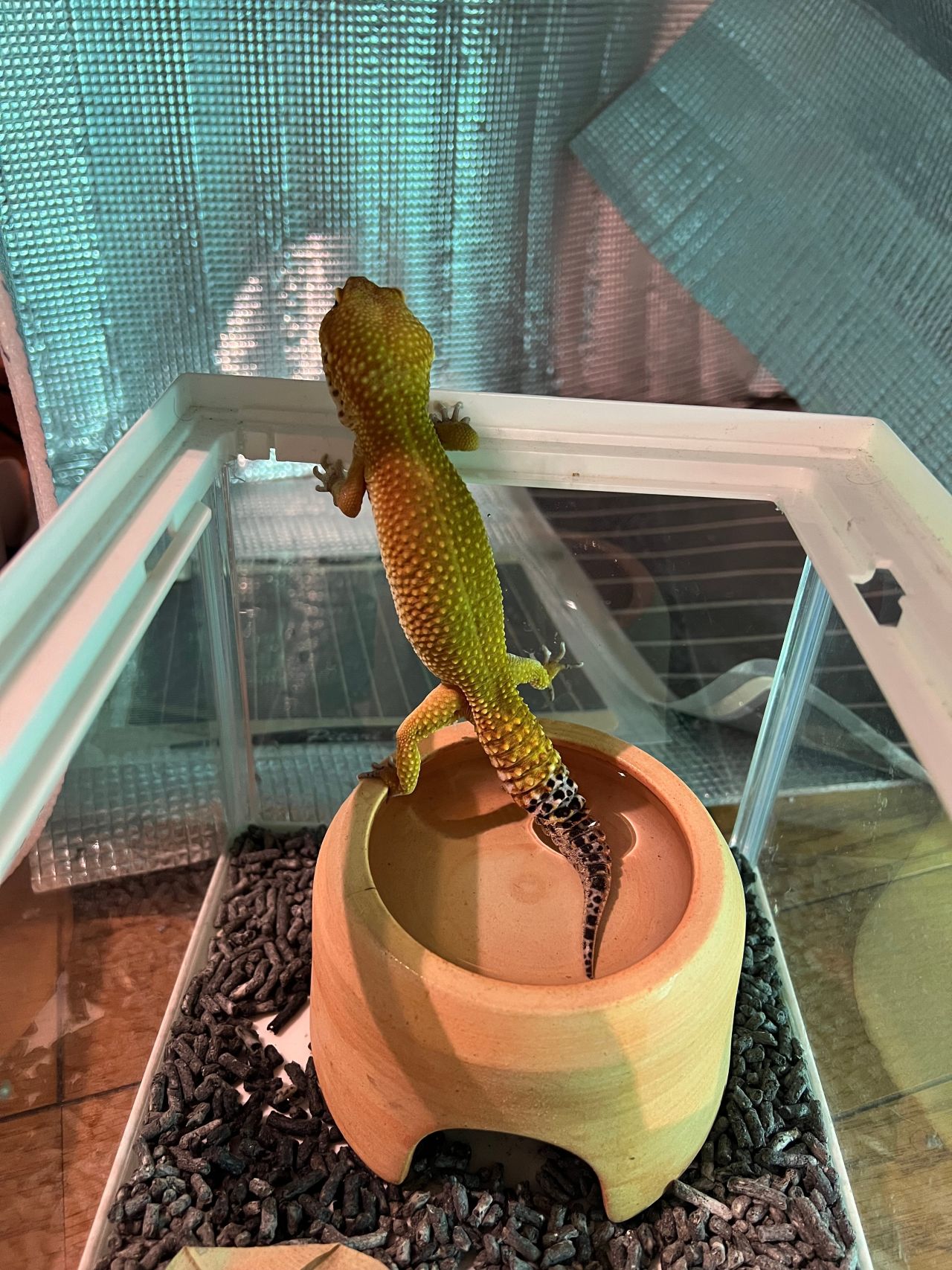 様々なモルフ(模様)があり家にいるのはタンジェリンとレオパード柄の2匹ずついます。