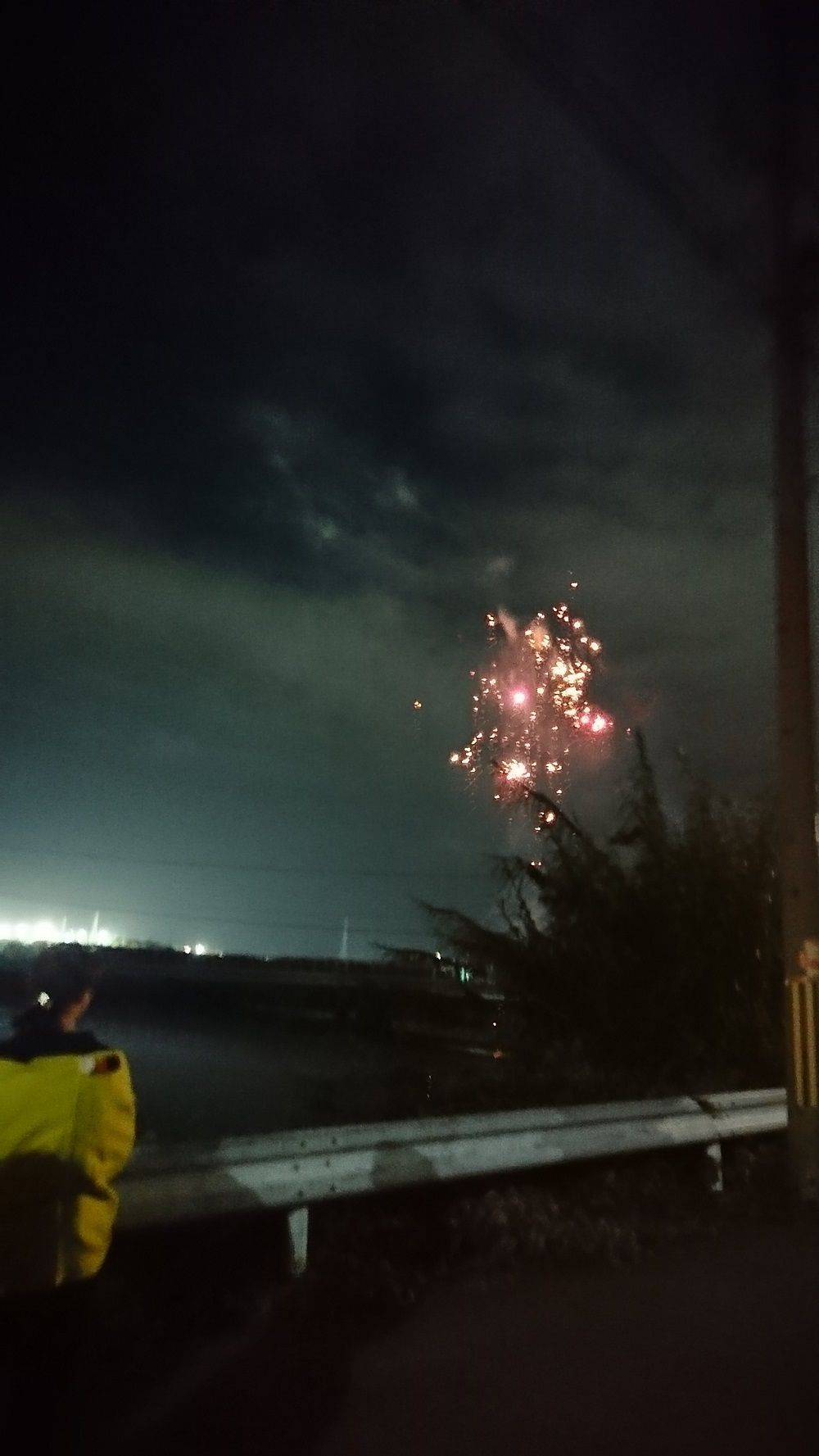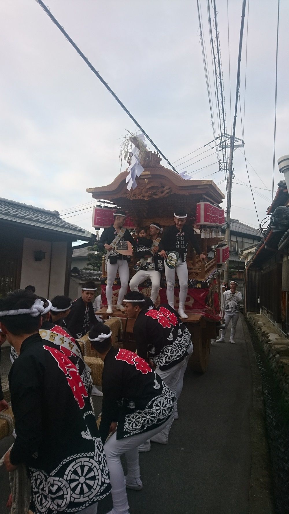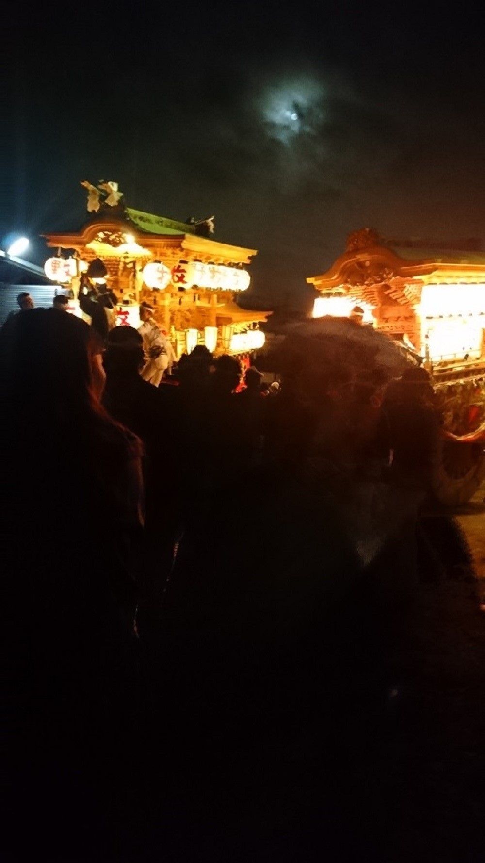 日も暮れて、隣町のやぐらと一緒になり不思議そうな顔で
