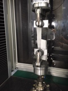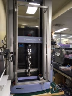 試験機のスイッチを入れるとチャック間が徐所に開いて