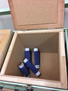 試験が終わったら箱の中からゴム管を取り出し、生地を外します。
