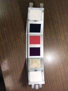 それぞれの半分を不透明の紙で覆い隠して、試験片ホルダーに取り付けます。